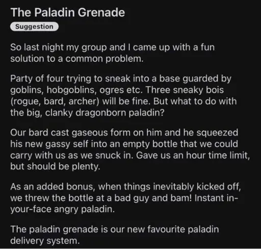 343The Paladin Grenadelemmy.dbzer0.comStamets@lemmy.dbzer0.com to RPGMemes @ttrpg.network · 1 day ago13
