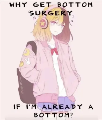 TotallynotJessica@lemmy.blahaj.zone to Trans Memes@lemmy.blahaj.zoneEnglish · 10 hours agoIs it so I can become even more of a bottom? 🥺 lemmy.blahaj.zone11211