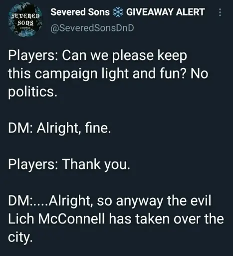 I mean props to the DM for saying the current queen is ruling properly. They could’ve just been like “oh this queen just thinks she can rule as well as a man. she’s actually hot headed and you note that public executions rise during a certain time of the the month”