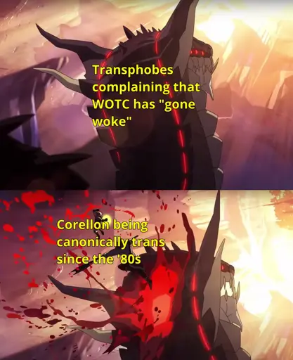 Correlon is a god who uses avatars of both Sex and/or Gender. I don’t see how that makes him trans in any way, because his avatars are not much more as if a player creates a character with a different Sex and/or Gender for his interaction in the gameworld. That doesn’t makes the player trans. So how does it make Correlon trans?