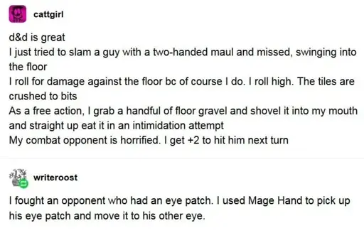 Stamets@lemmy.dbzer0.com to RPGMemes @ttrpg.network · 12 days agoPossibilities are endlesslemmy.dbzer0.com707217