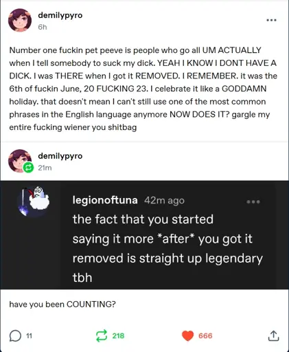 *These are my imagined connotations of OP’s, and have absolutely no real relevance to them at all. But damn if that’s not what I’d be meaning every time. Fuck them haters. Right to fucking death
